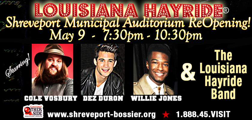 The legendary Louisiana Hayride will return to the stage of Shreveport Municipal Auditorium on Saturday, May 9, with a concert featuring Cole Vosbury, Dez Duron, Willie Jones, and more.