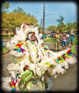 These days, there are other occasions for masking throughout the year, and St. Joseph’s is marked with a special festival on the closest Sunday—Super Sunday, when most of the Uptown-based Indian tribes don their Mardi Gras suits and meet at A.L. Davis Park (bounded by Washington, Lasalle, Third, and Freret).