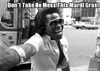 The Krewe du Vieux parade itself has a few special additions this year too though. The fledgling new Bywater-based Krewe Delusion joins Krewe du Vieux as its secondary line-up, rolling behind the Vieux members with their Delusion 2014 Queen and Krewe Captain, DJ Soul Sister. The Queen of Rare Groove brings her Krewe of King James marching troupe in tow — a gaggle of  brightly struttin’ disciples of Soul Brother #1, James Brown. For the first time, this new sub-krewe will march to funky beats and urge onlookers to “Get up offa that thing!” That’s right, these “Super Bad Sex Machine Strollers” ain’t takin no mess and have but one mission: to get you up and on the good foot.