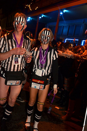 OffBeat Art Director Elsa Hahne and Photographer Golden Richard III in the 2013 Krewe du Vieux Parade (SPANK Krewe).