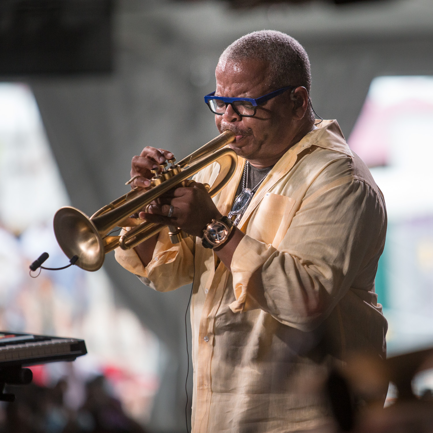 It was another New Orleans native that followed the historic duo, as Terence Blanchard introduced his E-Collective to the Jazz Tent. And Blanchard wasted no time bringing his crowd from Hancock/Shorter cosmic sphere all the way back to Earth, kicking things off with an appropriate cover of Prince’s “Diamonds & Pearls.”