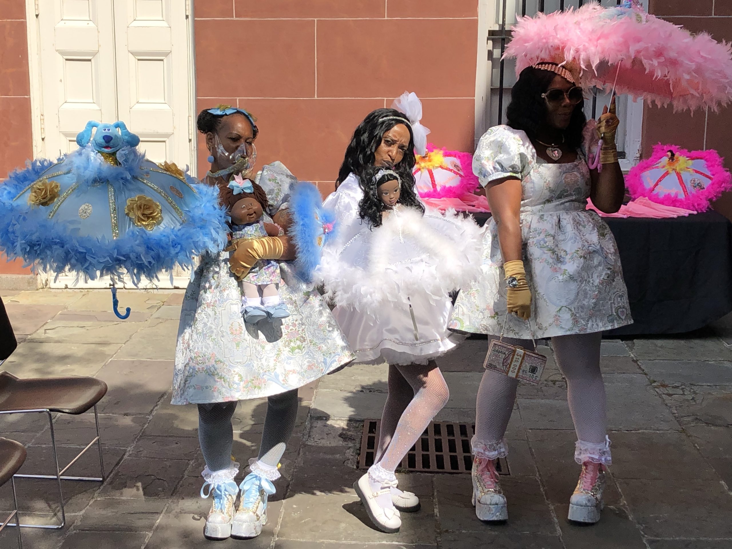 The New Orleans Baby Dolls held their annual “Blessing of The Streets” on Saturday, May 1, at their annual gathering on the North Peters side of the New Orleans Jazz Museum. The ceremony serves as a welcoming induction for new members and a reunion for women who continue to represent a Mardi Gras masking tradition that has evolved over more than a century.