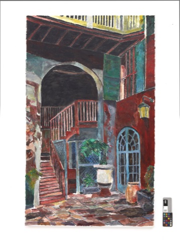 This sentiment is evident in Dylan’s paintings of the city, which were developed from sketches he drew between 1989 and 1992 (Dylan resided in New Orleans for some time while recording his 1989 album Oh Mercy). The works explore traditional New Orleans imagery like French Quarter courtyards and alleyways, as well as the private and public lives of various locals, from ministers and barbers to singers and musicians.