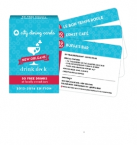 Support locally owned restaurants and bars with City Dining & Drinking Cards. Now in its 3rd Edition, the new format of Drink Deck offers 50 Buy-One, Get-One Free drinks to top New Orleans watering holes in one handy, portable deck of drinking cards. Sample cocktails and beers all around town in a unique (and affordable!) pub crawl. Visit product link for list of participating bars.