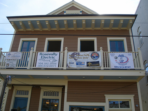 Professor Longhair’s newly renovated house on Terpsichore Street was officially unveiled to the public this afternoon. Professor Longhair’s daughter Pat Byrd tearfully cut the gold ribbon across the front door as the Stooges Brass Band filled the air with her late father’s music.