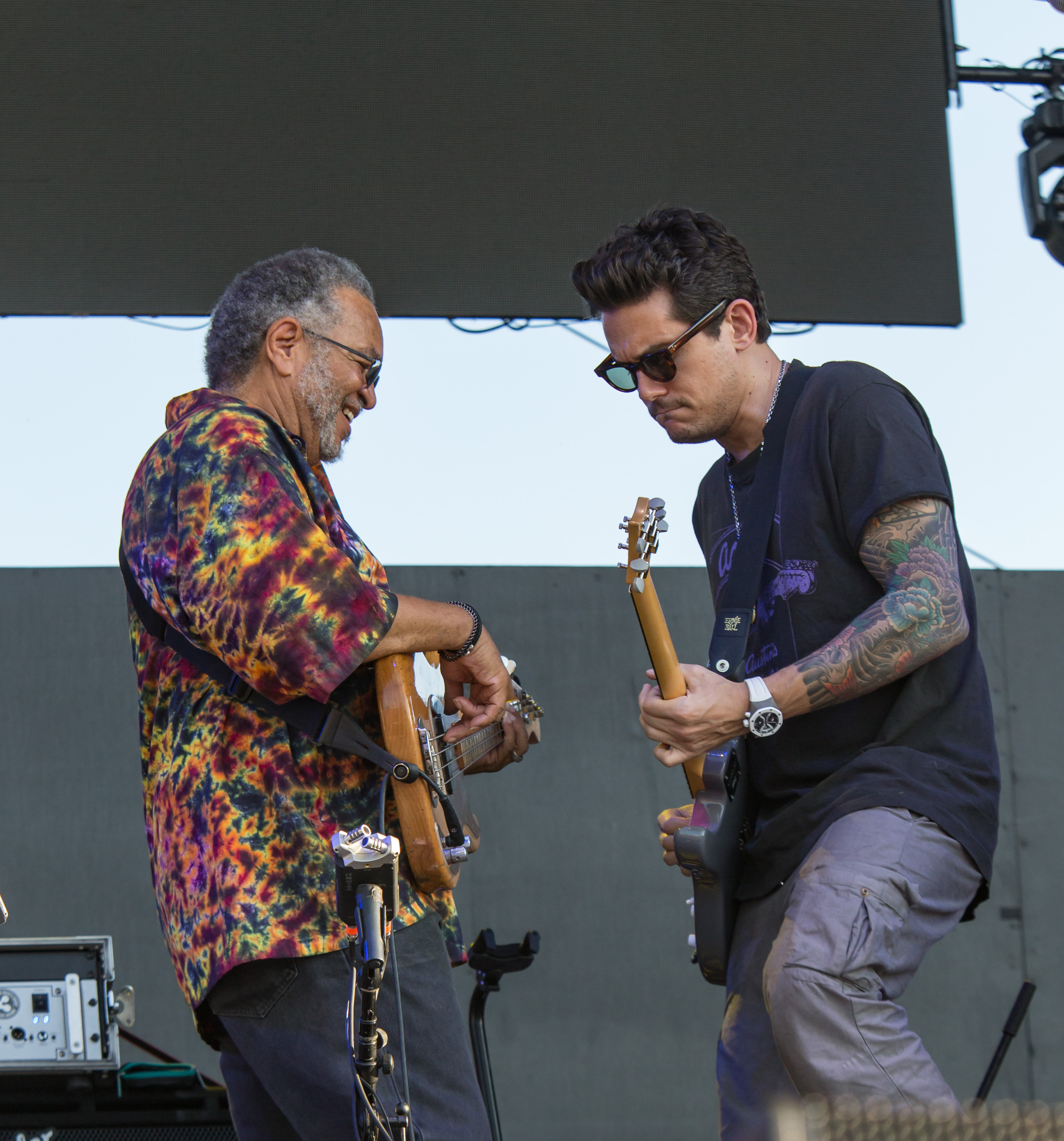 The Foundation of Funk tore into their hour long set with an energetic version of Same Old Thing going seamlessly into Africa, then hitting Just Kissed My Baby and Cissy Strut. After that Cyril Neville joined the fray to sing Gossip and Doodle Oop, further tightening the deep and soulful grooves. To that point the band, made up of George Porter Jr., Zigaboo Modeliste, Cyril Neville and Dumpstaphunk band mates Tony Hall, Ian and Ivan Neville, had the crowd transfixed, playing with the enthusiasm of kids. But they managed to find yet another gear when they brought up four guests from the festival’s headlining act, Dead & Company. John Mayer and Bob Weir plugged in guitars along Neville and Hall, and drummers Bill Kreutzmann and Mickey Hart put down percussion gear next to Zigaboo, raising the stakes of the set considerably.