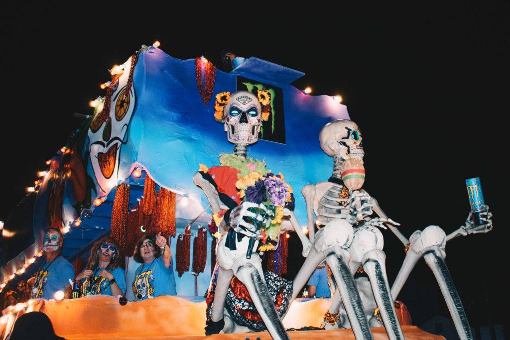 Just before Halloween on October 22nd, the Krewe of BOO parade marched through the streets of downtown New Orleans. People gathered in the streets dressed in colorful costumes, walking and on floats as they celebrated, cheered and danced all night. The parade ended on the street of Tchoupitoulas to Andrew Higgins Drive, following a post party celebration.