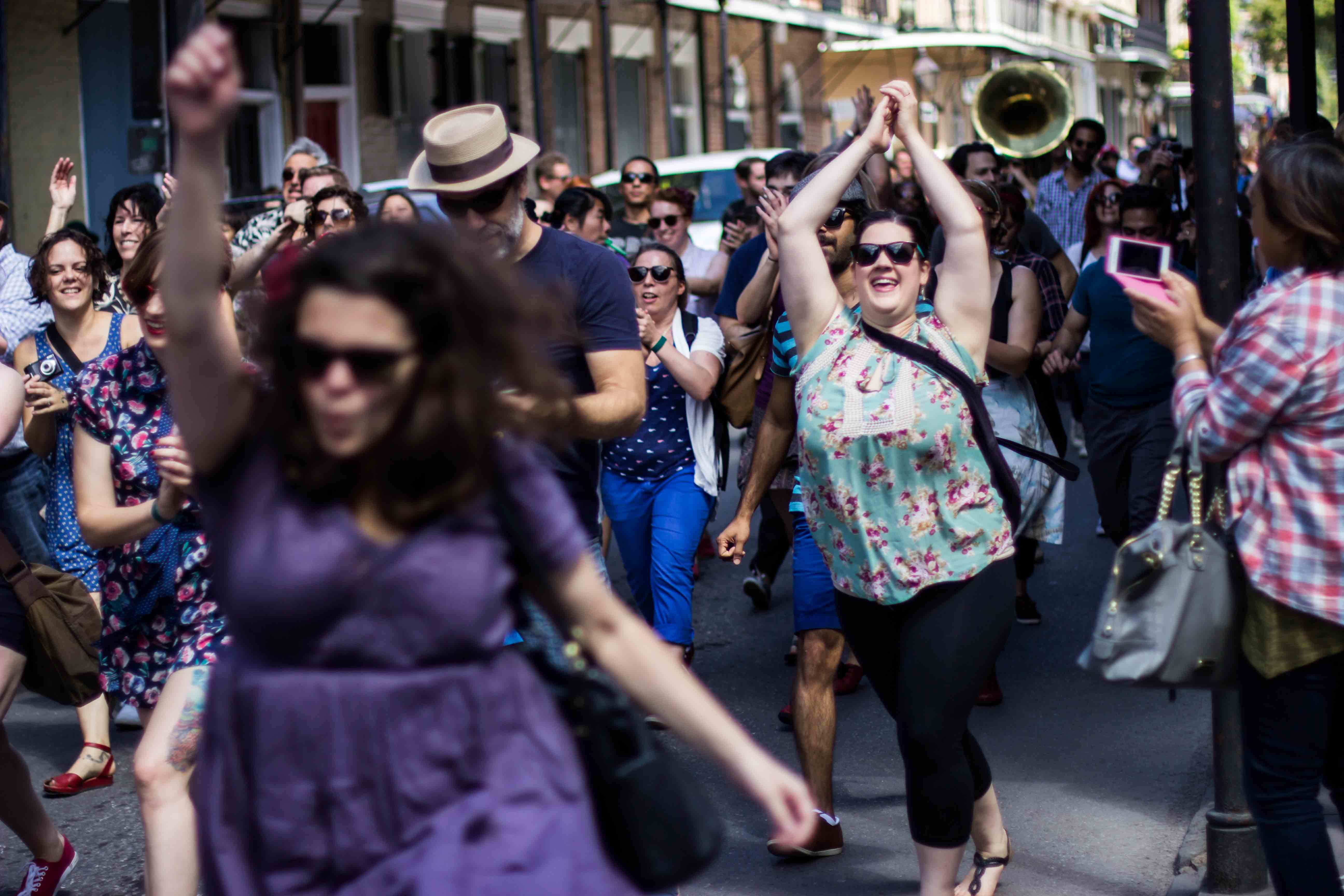 Musicians, dancers and enthusiasts gathered at Washington Square Park before making their way down Royal Street into the quarter. Eventually, the dancing procession landed at the Jazz Market where they were greeted by The Palmetto Bug Stompers for more music.
