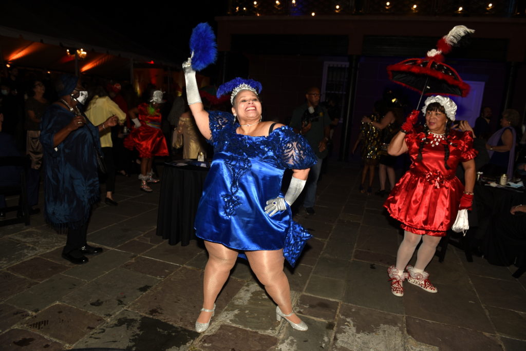 The New Orleans Jazz Museum hosted its annual Improvisations Gala on Saturday, December 4. The sprawling party stretched from a tented stage on the back lawn to performance spaces within the Old U.S. Mint and across multiple courtyards. A large illuminated windmill symbolic of the famous Moulin Rouge in Paris towered over guests in the Decatur Street Courtyard. Attendees were treated to an all-star lineup of acts, including an exclusive balcony concert at the Patron Party by Trumpet Mafia, accompanied by the N’awlins D’awlins Baby Dolls and the Original Wild Tchoupitoulas Indians led by Big Queen Mary K. Stevenson. The Patron Party also featured craft cocktails with Beam Suntory, a Beattie’s martini bar, along with hors d’ouevres, and champagne from an exclusive champagne sponsor, Frerejean Frères.
