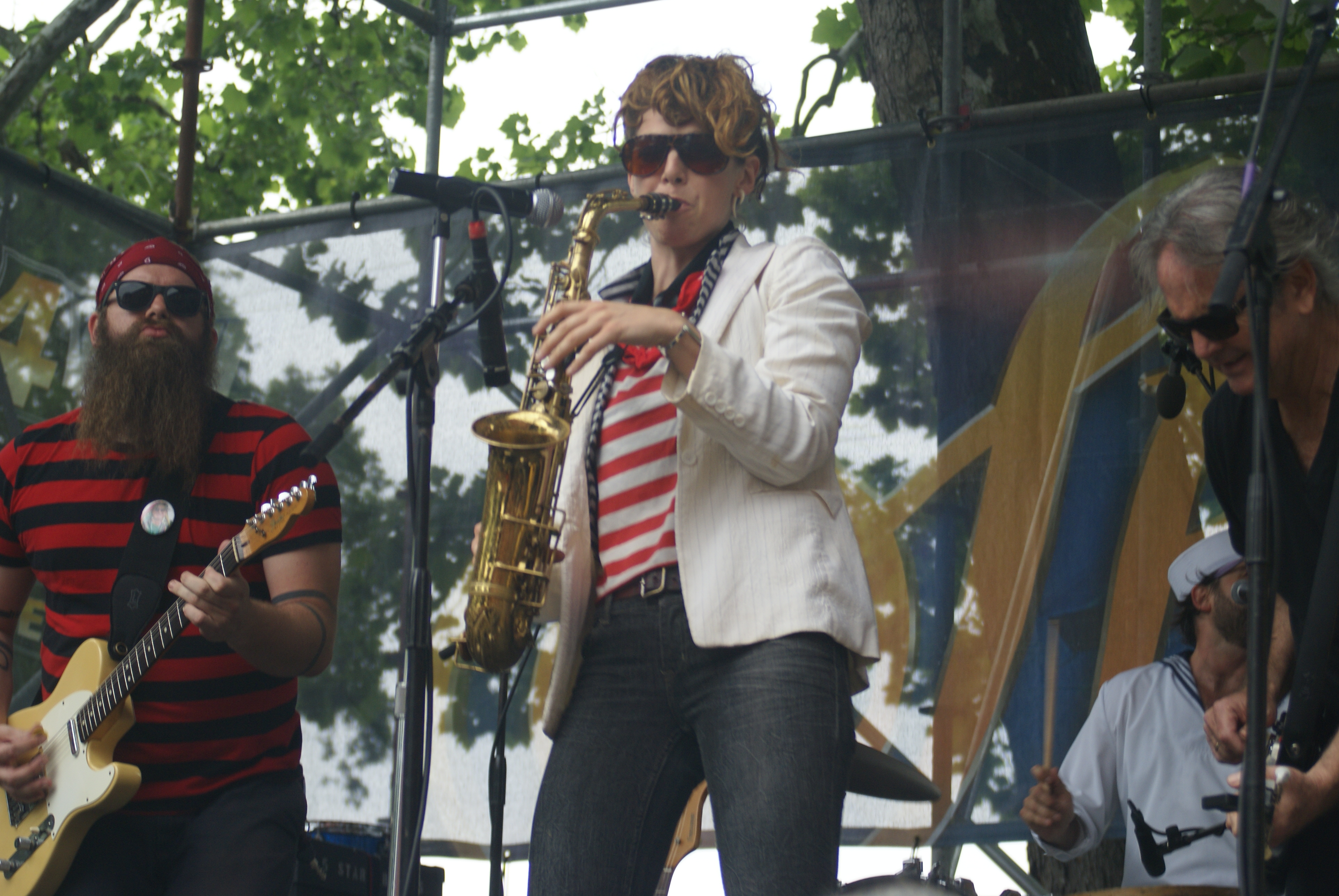 Propelled by the powerful thwangs of the upright bass and to the tune of screaming sax, Rory Danger and the Danger Dangers roared through French Quarter Fest yesterday afternoon in furious pursuit of that infamous great white whale, Moby Dick.