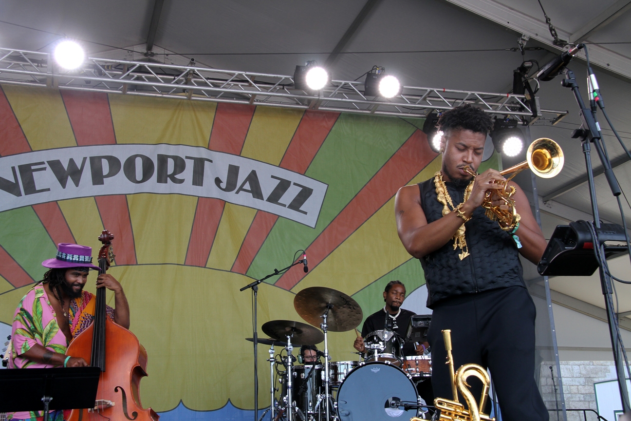 - Trumpeter Christian Scott Atunde Adjuah with bassist Russell Hall and drummer Joe Dyson at the 2021 Newport Jazz Festival on Saturday, July 31.