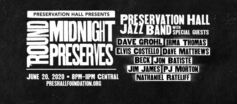 The benefit will highlight unseen archived performances with the Preservation Hall Jazz Band along with live performances by all-star special guests including Dave Grohl, Elvis Costello, Irma Thomas, Dave Matthews, Beck, Jon Batiste, Jim James, PJ Morton, Nathaniel Rateliff, and more.