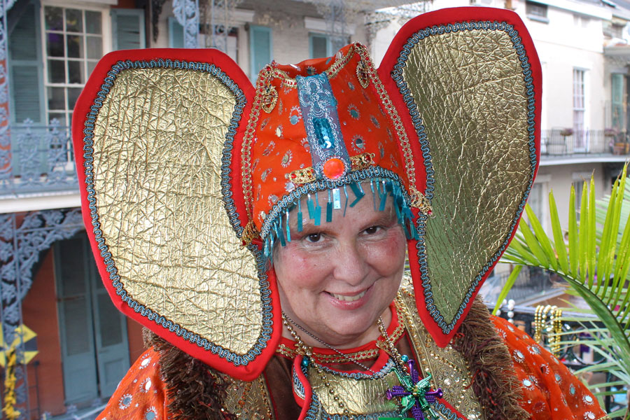 If you are not on Pat Jolly’s email list, well, let’s just say there might be a cultural event or two you are missing. Pat’s dedication to New Orleans’ cultural heritage is often unmatched. A dynamic soul, she serves our community as event promoter, humble host, photographer, art collector and all-around inclusive communicator. Pat can often be found cutting a rug on the dance floor or at a second line, costumed for Mardi Gras, snapping photos, acting as tour guide to guests, volunteering at a Mardi Gras Indian event or working a local arts and crafts booth. But perhaps best of all, she sports the silliest of the silly hats!