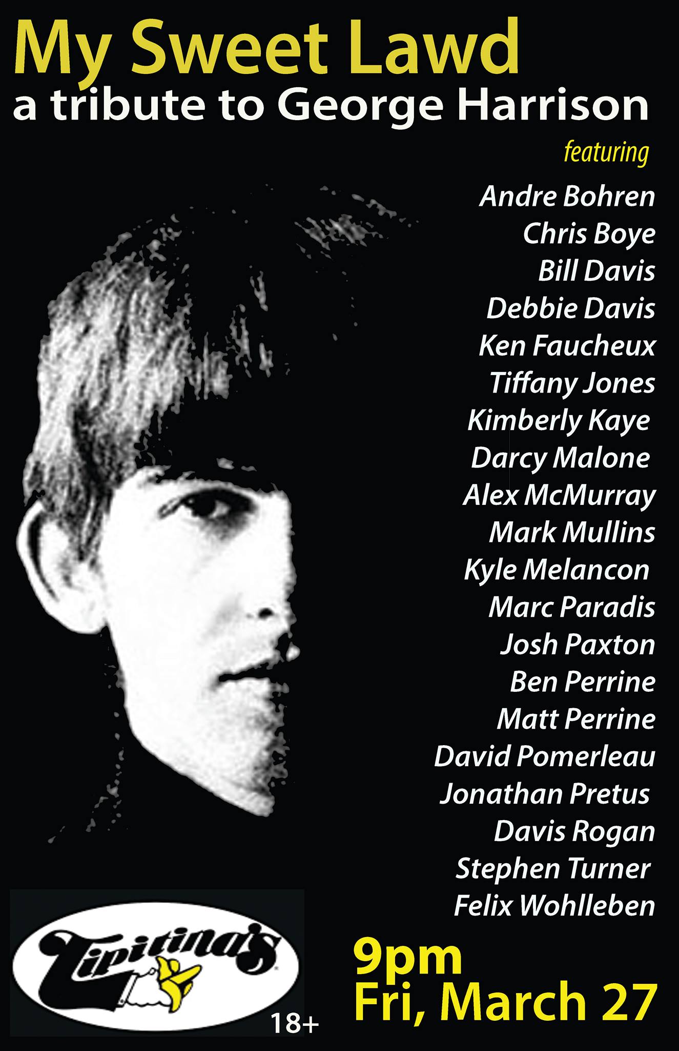 After the success of their Paul McCartney and John Lennon tribute concerts, a bunch of the usual suspects–including Davis Rogan, Jonathan Pretus, Debbie Davis, Andre Bohren, and Darcy Malone Boye–are gearing up to host a George Harrison tribute this Friday at Tipitina’s.