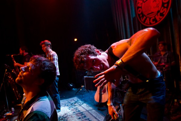 Immediately, the band showed the audience why they’re becoming one of the most popular rock groups in the city: tasteful guitar solos that were never indulgent, a tight rhythm section, lush horn arrangements, and a wavy pedal-steel guitar that resonated over the crowd. That should have been enough to satisfy an audience, but the atmosphere was only at a simmer, and it was Shaw’s charisma that brought it to a boiling point.