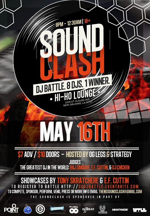 The soundCLASH—New Orleans’ monthly premiere beat battle, local hip hop artist showcase, and networking event—launches a new challenge and moves to a new venue, the Hi Ho Lounge for its monthly edition on Thursday, May 16. The vent was formerly held at the Maison on Frenchmen, but the Hi Ho is booking more and more hip hop shows, under the venue’s new management team, who also own the Maison.