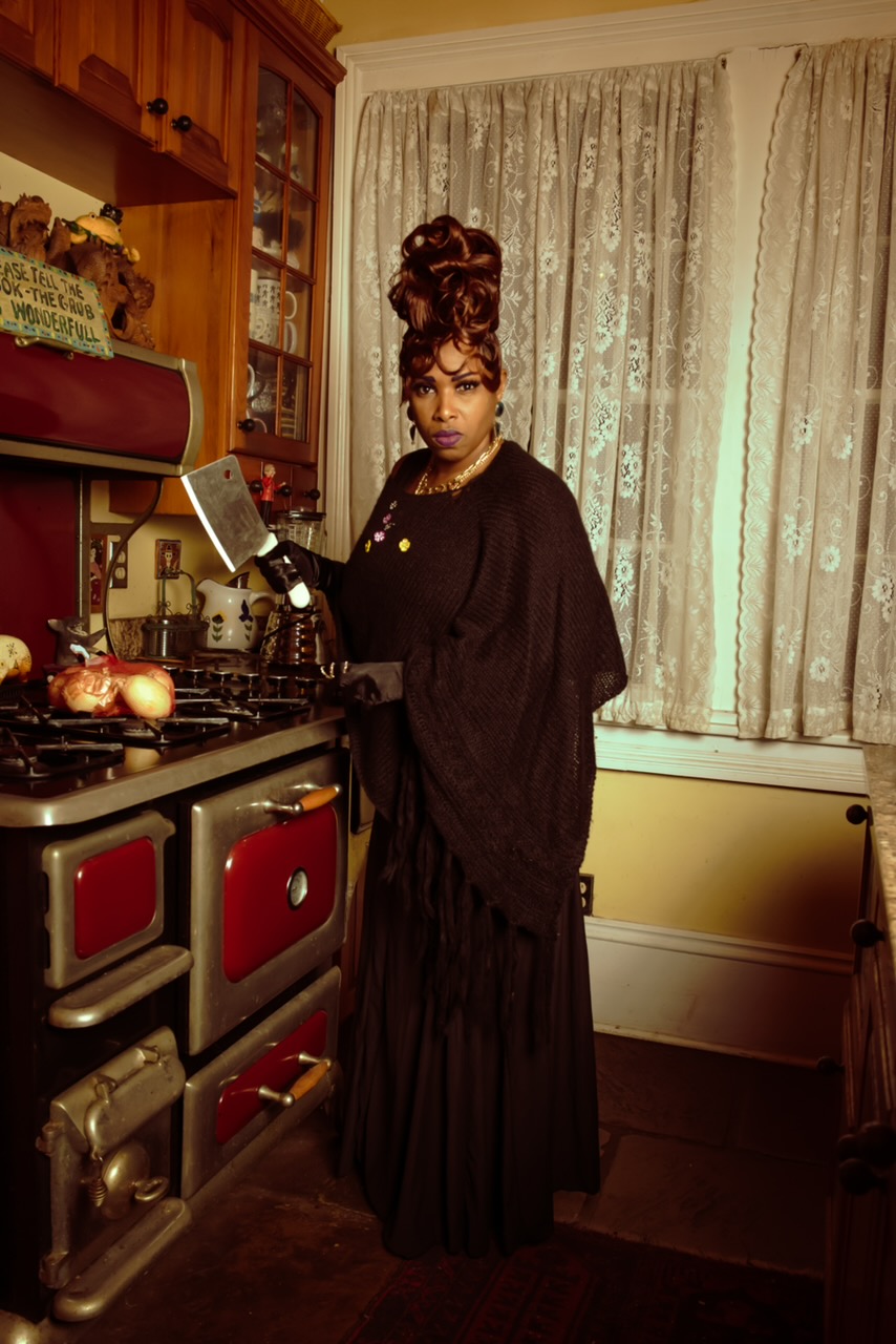The way Thomas captures the eerie feeling of the Grimm German fairy tale gives off a sinister vibe—but with a New Orleans twist. “The city is so known for its many voodoo stories [and connotations] and its past ties into this photoshoot…it should feel as though this [European story] took place in this city [instead].” Whether it be from the sharp butcher’s knife or the vintage horror mask hanging off of the dresser, the pictures develop a cinematic feel and displays a terrifying jaw-dropping feel to it all when viewing.