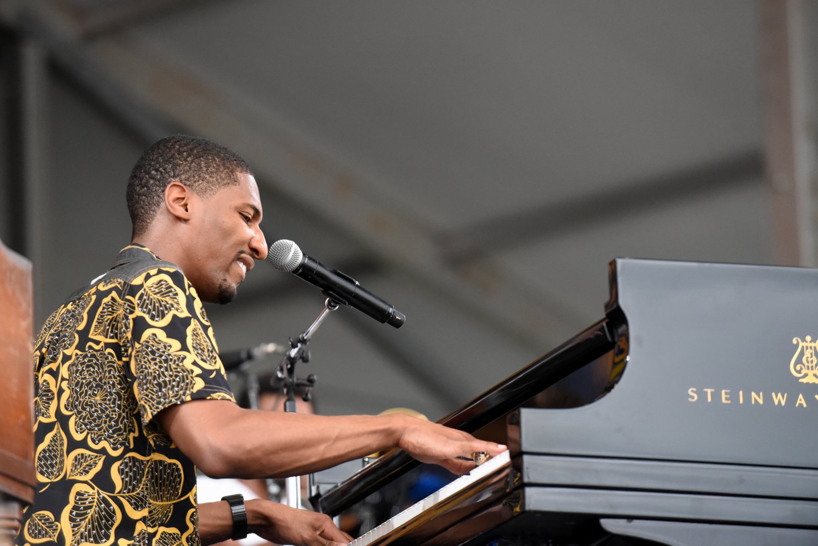 Like Charmaine Neville, local Jon Batiste also hails from a musically royal family. Batiste and his band, Stay Human, rocked the Acura Stage as well as they do every weeknight on The Late Show with Stephen Colbert. Wearing a handmade banana leaf-printed shirt, Batiste left his piano for a standup solo on his melodica, or what he calls his “harmoniboard” for its harmonica-keyboard combination.