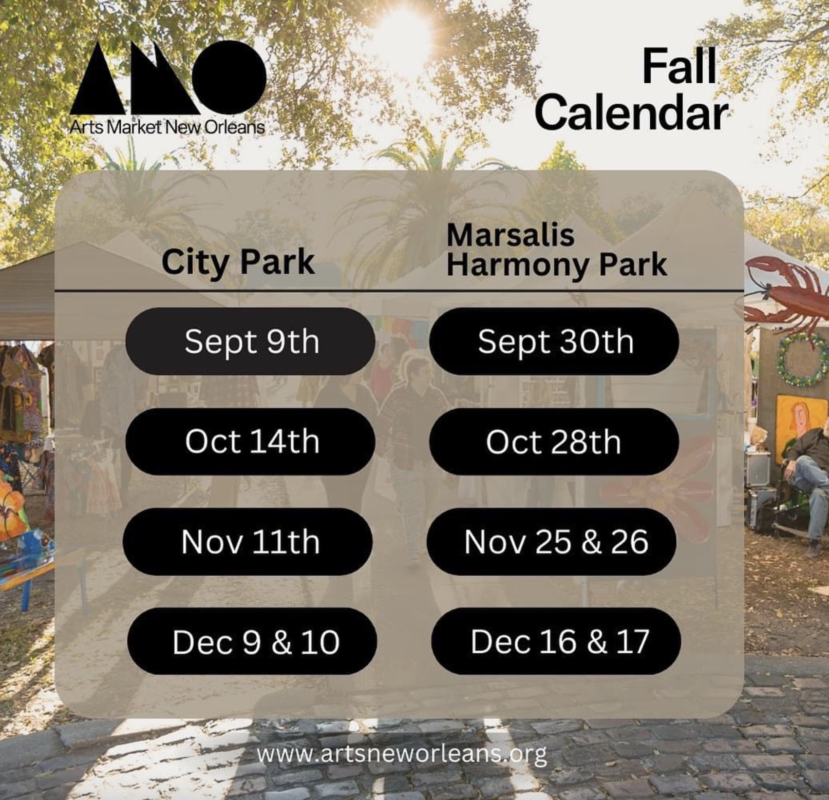 The New Orleans Arts Market will take place this Saturday, October 28 in Marsalis Harmony Park (formerly Palmer Park) from 10 a.m. -4 p. m. Shop with local artists and makers to find all of your festive and spooky looks this for this Halloween. This market will feature live music by ShaBram and the Fam, a New Orleans funk and soul trio led by drummer and vocalist, Kyle ShaBram Sharamitaro and will also feature free faceprinting for kids at the AMNO information tent. These bi-weekly markets offer a rotating list of Gulf South artists, kids’ workshops, live music, food, and more! Stay up to date with all the latest market news, including upcoming events, vendor information and more here.