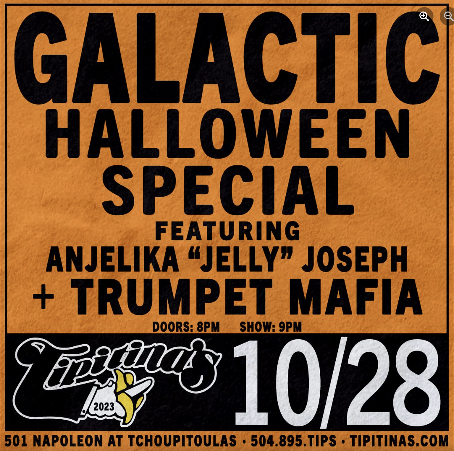 New Orleans’ own jazz-funk jam band, Galactic, featuring Angelika “Jelly” Joseph, returns home to Tipitina’s on Saturday, October 28 for their Halloween show featuring spacial guests Trumpet Mafia. Drawing upon the vibrant funk, R&B, and jazz traditions of their native New Orleans, Galactic built a loyal following with their own brand of jam-based grooves. Emerging in the mid-‘90s, the band has produced 10 albums, performed thousands of gigs and continues to evolve with the times. They were recently joined by vocal powerhouse Anjelika “Jelly” Joseph, and have continued to forge ahead with exciting new music. Galactic will be joined by New Orleans trumpeters, Trumpet Mafia, known for their creative excellence and unexpected arrangements that mix traditional jazz and hip hop styles. For tickets and additional information for this weekly pick, go here.