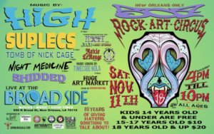 If music, art, sideshow, burlesque and bbq are your thing, you may want to check out the 504 Rock Art Circus at The Broadside from 4 p.m. until 10 p.m.. This all ages event will have live music from heavy-hitting local bands; HiGH, Suplecs, Tomb of Nick Cage, Night Medicine and Shidded; a 30 minute screening of local music videos; Burlesque with Roxie LaRouge; Side Show with Side Show Matt, Cassidy Coperhead and JuJu; and a presentation by NOLA Suspension. If that wasn’t enough, they will also have an art market and local vendors as well as delicious bbq provided by Cochon King BBQ. This is the 18th year of this underground arts and music event. Admission is free for those 14 and under, and $10 to $20 for all others. Learn more or purchase tickets here. Weekly Picks