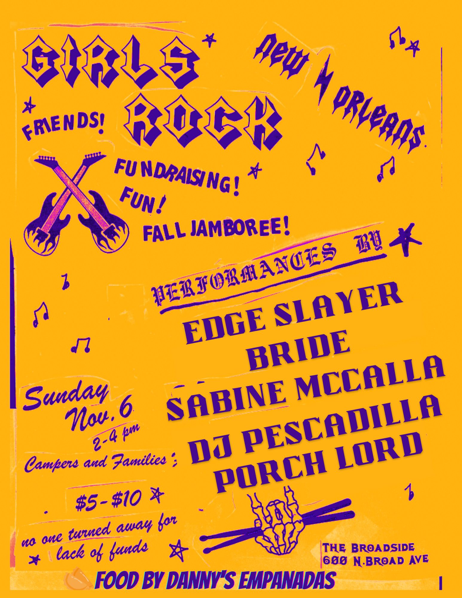 Girls Rock New Orleans empowers local young women, trans and non-binary youth as a part of a camp program. And like it says on the can, they’re hosting a show at The Broadside to lift up local girls who rock. The even will feature performances from Edge Slayer, Bride, Sabine McCalla, DJ Pescadilla and Porch Lord for only a $5 to $10 donation, but no one will be turned away for lack of funds.