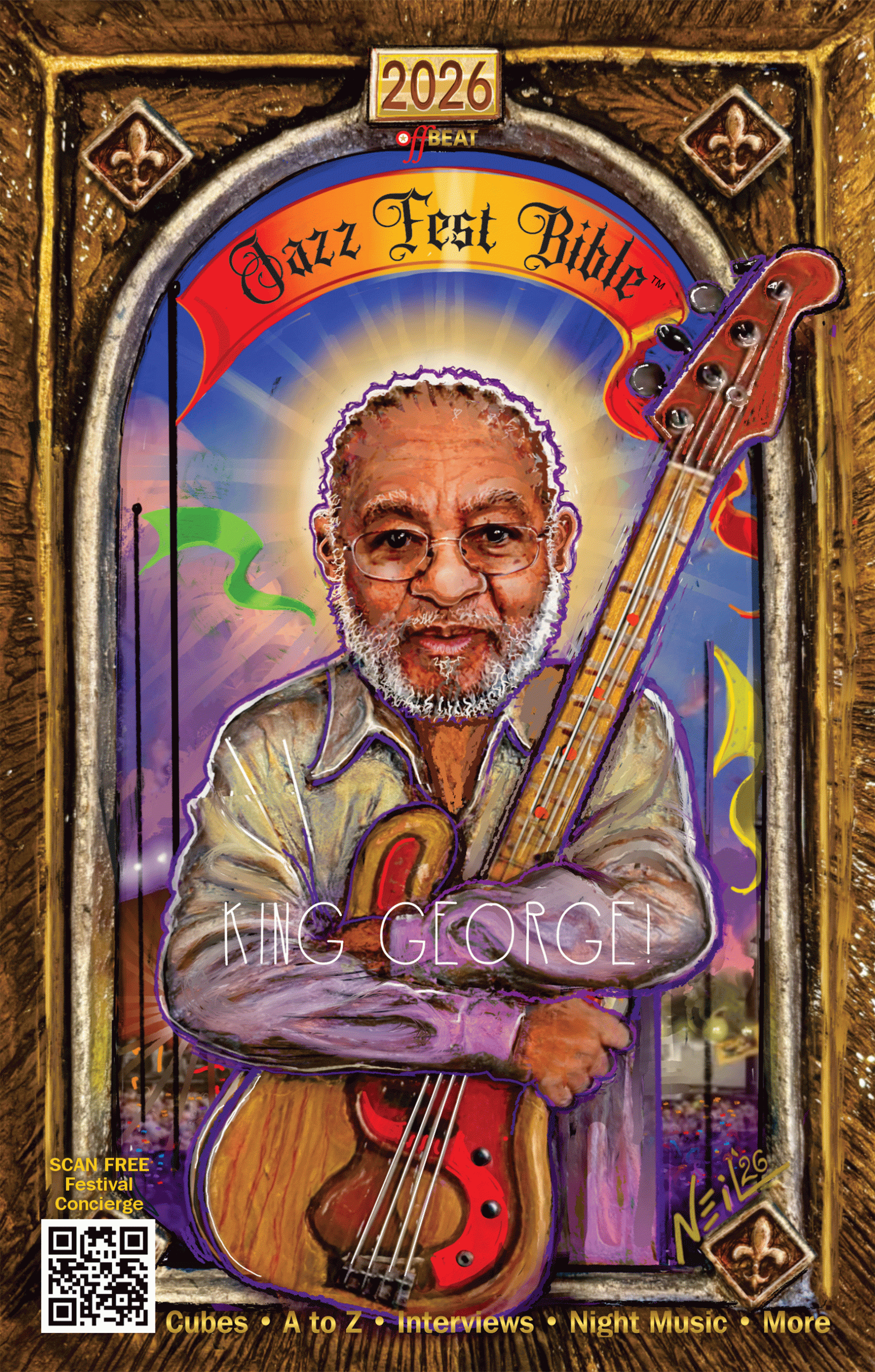 The 2026 Jazz Fest Bible™ will be shipped by April 21, 2026. It is unlikely that you will receive the magazine before Jazz Fest starts. The Jazz Fest Bible will be distributed for FREE outside the festival entrances on Gentilly and Sauvage Streets.