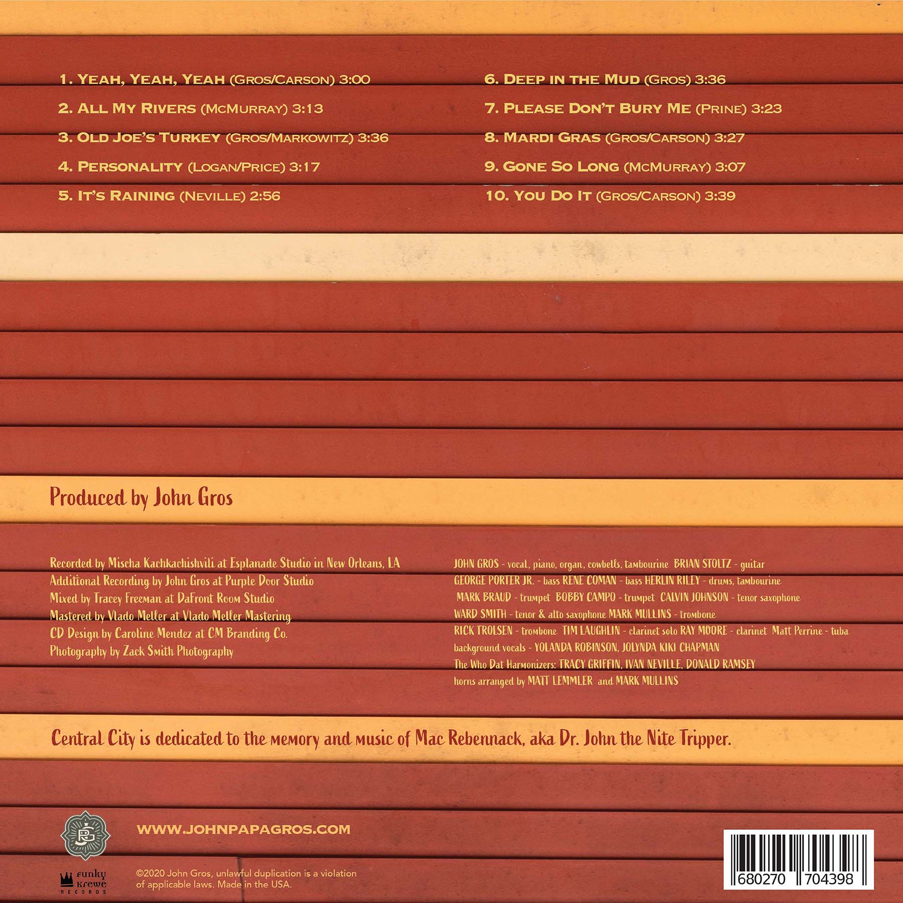 I thought “You Do It” was a love song to John’s wife Becky but it’s actually a love song to New Orleans music with specific references to Dr. John, Zigaboo Modeliste, Ed Volker of the Radiators and Irma Thomas. Gros loves New Orleans music almost as much as it loves him.