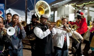 [Updated] Last season, one of the Treme storylines involved Antoine Batiste’s high school band wanting to play in a Mardi Gras parade. Sunday’s Krewe of Carrollton Parade tipped the direction that plotline goes when a band from Theophile J. Elie High School marched, accompanied by a handful of cameras and mics. Walking in front of the band looking casual in his band windbreaker and slouch hat was Wendell Pierce. New Orleans’ ability to play along was impressive as people around me shouted “Antoine” instead of “Wendell” as the parade passed. I haven’t got confirmation yet that the television band marched the whole route or that they played – they didn’t in front of me – but The Uptown Messenger has a photo.
