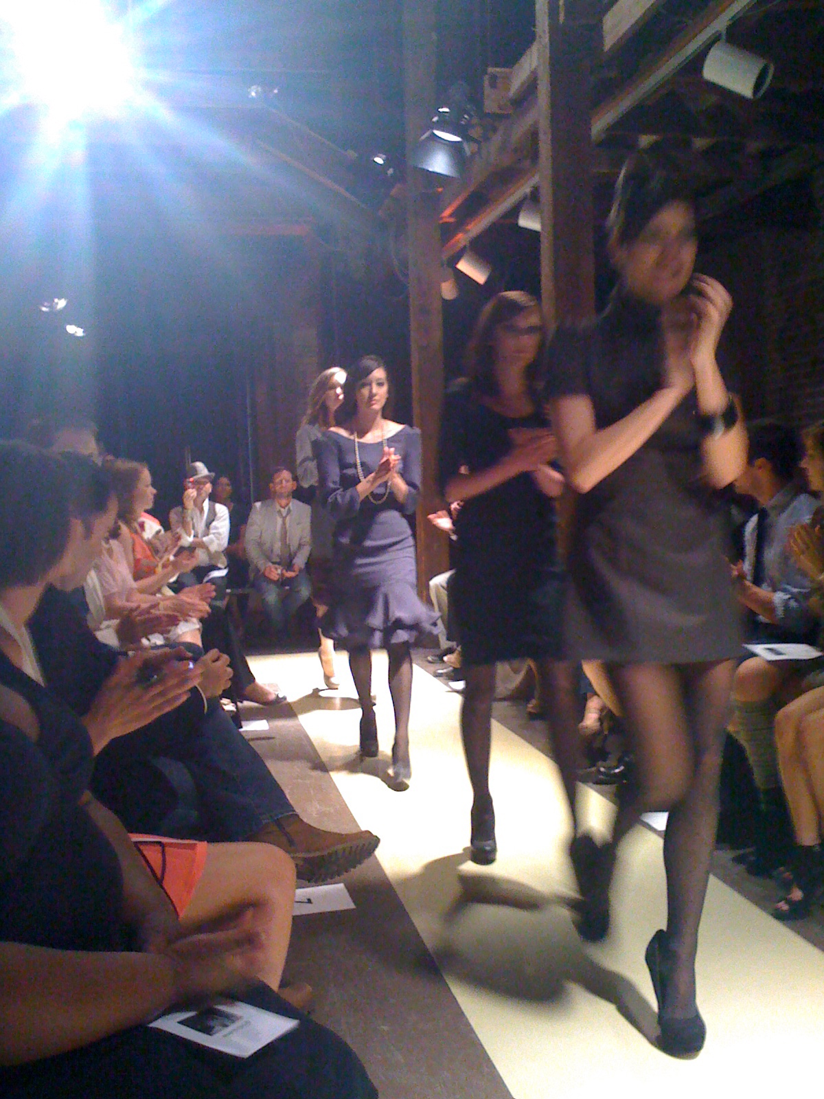 The next runway show featured a number of area jewelry makers. One woman—I’m afraid I couldn’t see the designers’ names from my seat—made elaborate epaulets that were attached by a chain that ran across the collarbone, and Nelson and Little made pieces that were subtly-elegant, carefully-wrought pieces made from less-precious metals and hides.