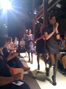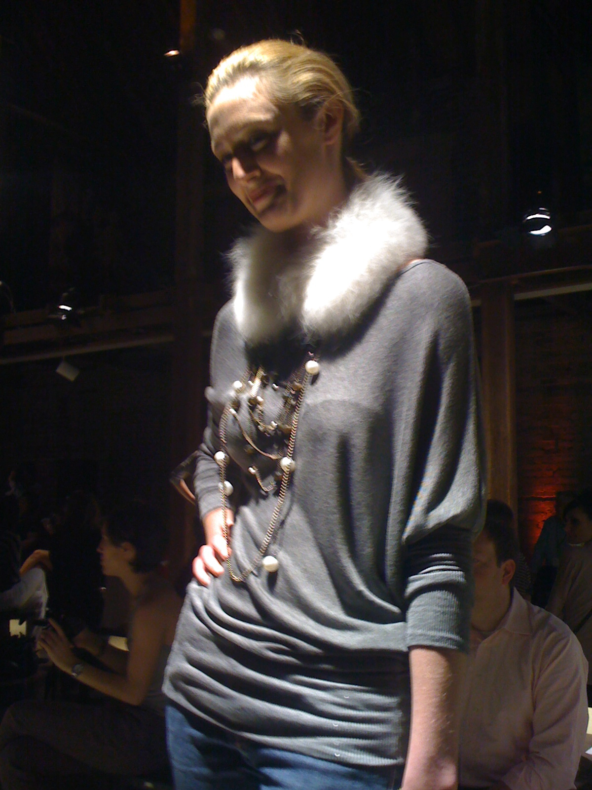 The quality of modeling varies significantly, but the level of craft was substantial in the shows I saw. Ottilie Brodmann’s show consciously evoked the early 1960s by way of Mad Men. The inspiration may be a little done, but the simple, tailored looks in earth tones framed with faux fur were striking and occasionally daring. (Does an eight-inch-wide strip of fur around the hem of a skirt work? Still deciding.)